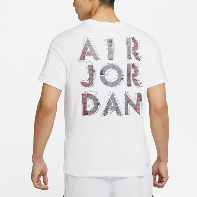 Men's Air Jordan Dri-FIT 3D Logo Funny Printing Knit Quick Dry Short Sleeve White T-Shirt CZ8088-100