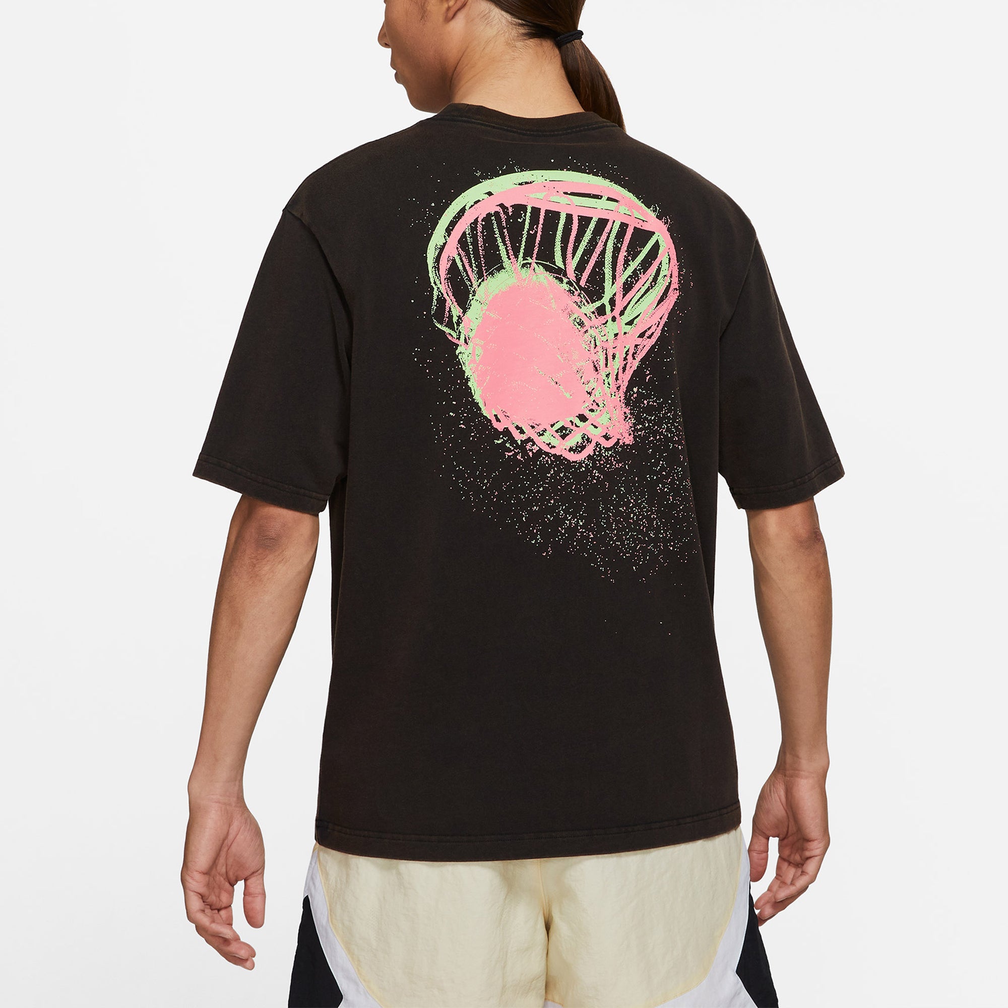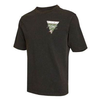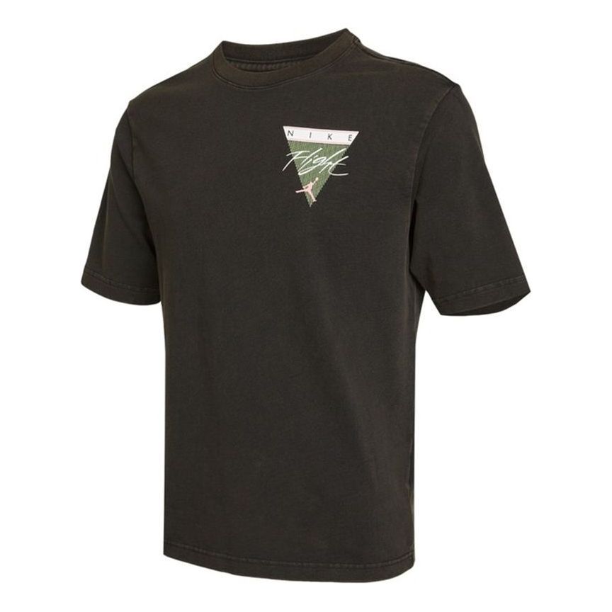Men's Air Jordan Flight Essentials Washed Basketball Sports Printing Round Neck Short Sleeve Black T-Shirt CZ8064-010