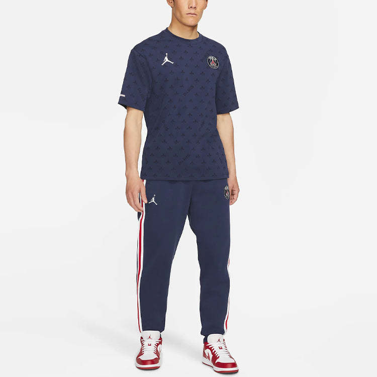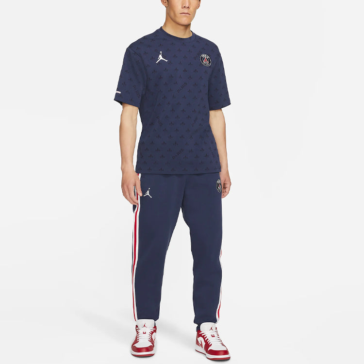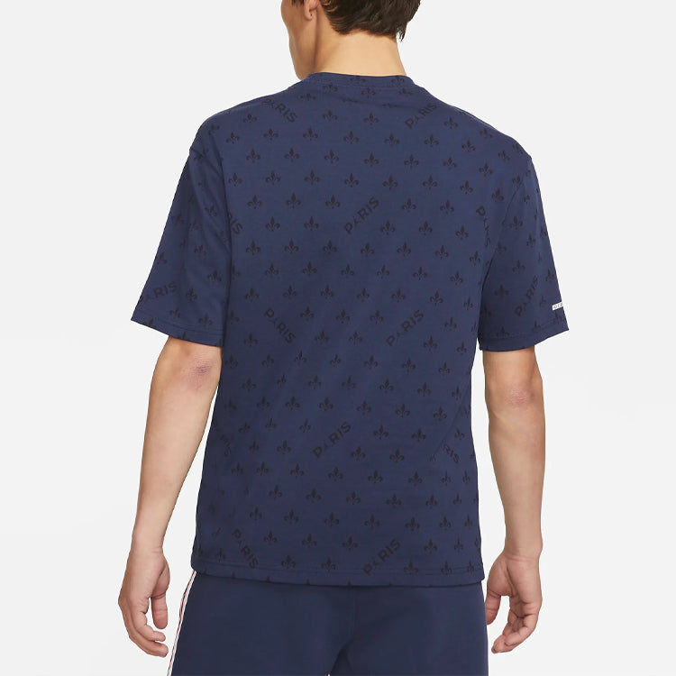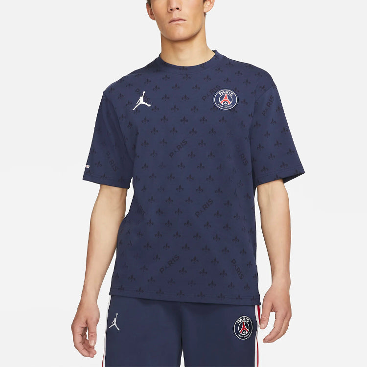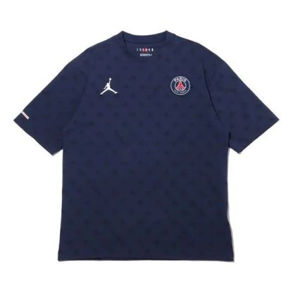 Air Jordan Paris Saint-Germain Statement Casual Sports Full Print Round Neck Short Sleeve Navy Blue DB6509-410